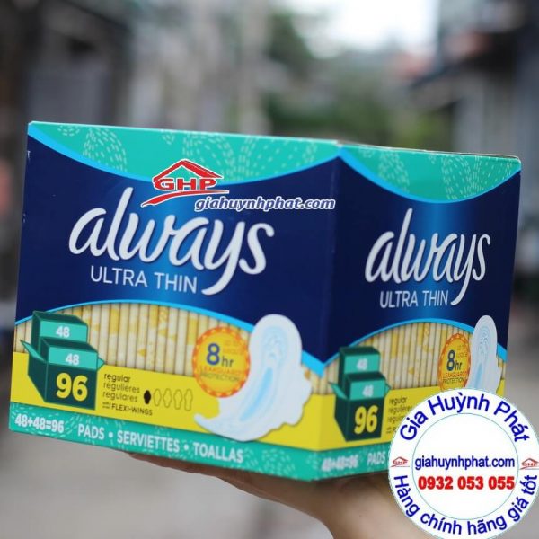Băng vệ sinh siêu mỏng cánh siêu thấm Always Ultra Thin 8 Hours hàng mỹ xách tay dùng cho những ngày lượng kinh nguyệt ra vừa phải, hoặc phù hợp với những người có lượng kinh nguyệt không nhiều, thiết kế lớp bông mềm mịn không gây kích ứng da, lõi siêu thấm khóa chất lỏng bên trong với 2 cánh giúp cố định băng vào underwear chắc chắn, linh hoạt, chống tràn hiệu quả, cho bạn thoải mái di chuyển, vận động mạnh mà không làm nhăn, co dúm hay lệch miếng băng. Với hương thơm nhẹ khử mùi, kháng khuẩn cho bạn cảm giác dễ chịu, khô thoáng , sạch sẽ.