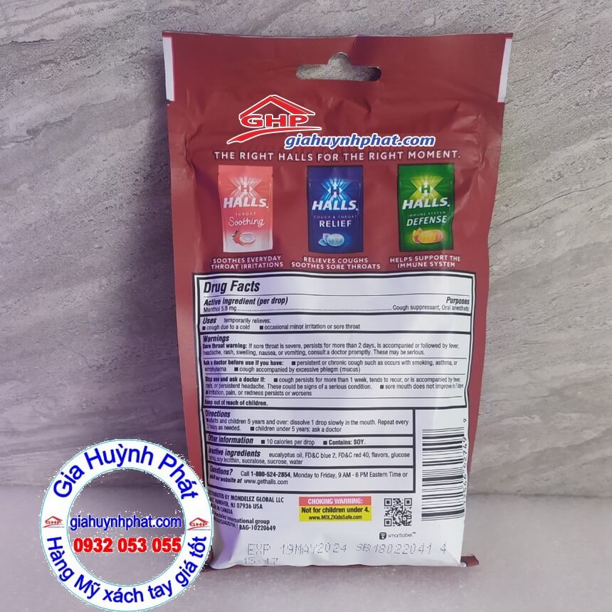 Viên Kẹo Ngậm Trị Ho Thông Họng Halls Relief Cherry Hàng Xách Tay Mỹ